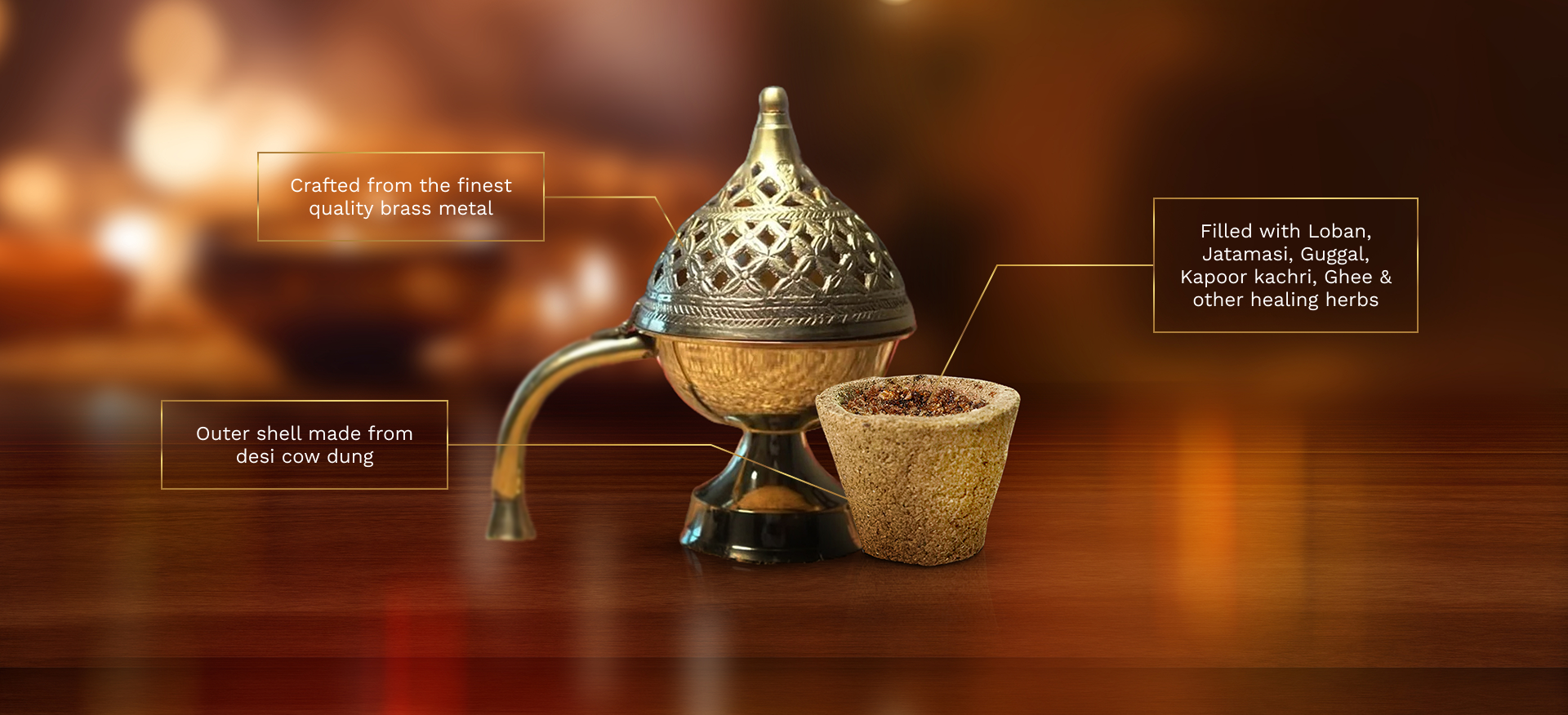 A perfect combination for traditional havan rituals. The dhuni makes it easy to spread the fragrance without making a mess. The natural ingredients in the cups give a rich, temple-like aroma.