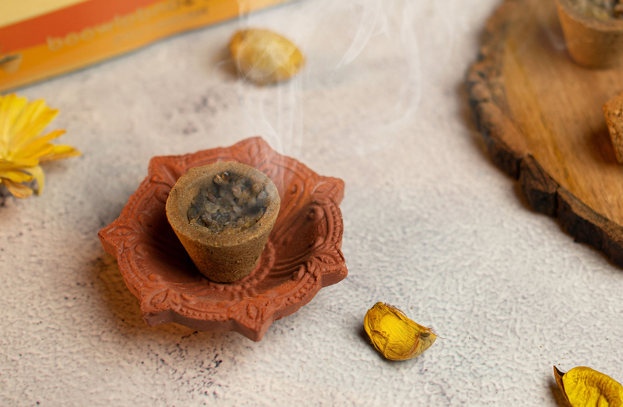 - Filled with a special composition of 25+ healing herbs like Jatamasi, Loban, and Guggal to spread good vibes at your office and home.